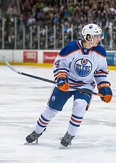 As an 18-year-old player, Tkachev was eligible for the 2014 NHL Entry Draft but went undrafted despite being listed 60th overall on the NHL Central Scouting Services' final 2014 North American skaters list.[6] He was, however, invited to the Edmonton Oilers' training camp later that year. His performance in their training camp impressed the Oilers, and he was quickly signed to a three-year entry-level contract with the team.[7] Oiler fans immediately anointed him "Vladdy Hockey" as a direct comparison to "Johnny Hockey" Gaudreau, a star player who plays for rival Calgary. The National Hockey League, however, rejected the contract, informing the Oilers that Tkachev was ineligible to be signed by any NHL team until the 2015 off-season because the Collective Bargaining Agreement stated that CHL players needed to play a full season in North America to be eligible if undrafted. The Oilers admitted not realizing that this clause existed, and Tkachev remained unsigned.[7] He promptly returned to the Moncton Wildcats to continue his QMJHL career.