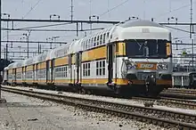 The Voiture de banlieue à 2 niveaux (VB 2N, English: two-deck commuter car) is a type of double-deck passenger railcar used on Transilien, the commuter rail network in the Île-de-France region of France.[2] The cars are unpowered and designed to be paired with an electric locomotive.