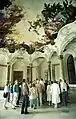 The lowest part of the stair leads away from the reception hall, towards a blank wall and then splits into two stairs which double back. Thus, the host on the upper landing was able to see his visitors first who initially walked away from him. When the guests turned and approached, the vast ceiling fresco above was increasingly revealed to them.[1]: 54–5