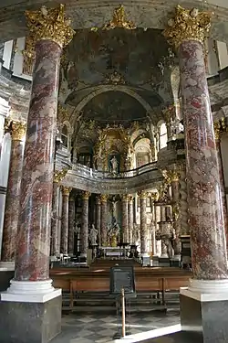 The Court Chapel is a prime example of the sacral Baroque style in Germany. The interior design is dominated by the curving walls and three intergradient oval dome vaults.