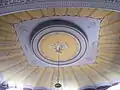 The walls of the Imperial Hall consist of stucco work marble in shades of red, white and yellow. The dome is painted in white colour, decorated with golden stucco work and also frescoes by Tiepolo, showing an idealized history of the diocese of Würzburg. One picture, Die Trauung Kaiser Barbarossas und der Beatrix von Burgund durch den Würzburger Fürstbischof 1156 shows the marriage of Emperor Frederick I Barbarossa and Countess Beatrix of Burgundy, consecrated by Gerold, Bishop of Würzburg. The opposite picture shows Frederick II appointing the Bishop of Würzburg Duke of Franconia. On top of the dome a painting shows the Brautfahrt: Apollo in the sun chariot leads the bride Beatrix surrounded by Venus, Ceres and Bacchus towards the Emperor Frederick II, who is accompanied by the Bishop of Würzburg.[1]: 56