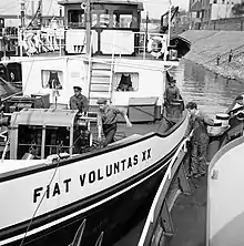 Willem van Driel Sr. had worked his way up from sailor to captain on the Waal tugboat Nieuwe Zorg, which he later purchased, before setting up his tugboat company. The first tugboat in a series, called Fiat Voluntas I, was launched in 1884 at the Wilton shipyard in Rotterdam. These tugs usually had a length of about 30 metres (98 ft) and a draft of 2 metres (6 ft 7 in), which made them excellent for navigation on the Rhine. In the end, 29 tugs were built or bought between 1884 and 1966.[2] In 1913 the fleet had already been expanded to 17 tugs and 41 towage vessels. In the end, more than 80 towage vessels were built or bought, mainly named W. van Driel 34 to 72, and seven motor vessels,[3] the last of which was scrapped in 1985.[4] Between 1916 and 1937, 13 more coasters were built. In the following years, a 700-ton crane vessel, a 1,550-ton tow crane and steamships followed. In the beginning of the 1980s, eight cargo barges were built.