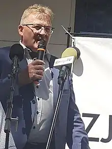 In the 2015 parliamentary elections, he unsuccessfully ran on the KORWiN party list for the Sejm.[20] He became one of the leaders of the registered in 2018 Peasant Party[21] and its candidate on the list of the coalition of SLD Lewica Razem for the regional council in the 2018 Polish local elections.[22] A few months later, he joined the informal council of the Agricultural-Consumer Confederation, operating within the Confederation Liberty and Independence.[23]