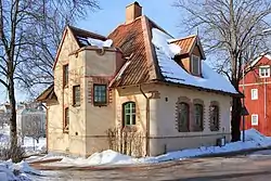 Wahlmanska huset (Wahlman building), also gamla varmbadhuset (former bath) is a building in Hedemora, Sweden, and a listed building since 2010. The house is named after the architect Lars Israel Wahlman, and was built in 1899 as the town's bath. It served as such until 1974, when the swimming- and sports venue Vasahallen was built.[1] Wahlmanska huset was then left to degenerate until 1982, when a restoration was conducted and the building became a gallery for temporary art exhibitions.[2]