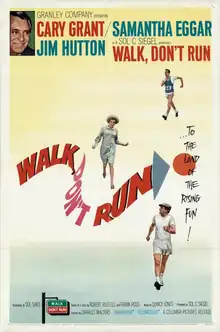 Walk, Don't Run is a 1966 American romantic comedy film directed by Charles Walters, and starring Cary Grant (in his final film role), Samantha Eggar, and Jim Hutton. The film is set during the 1964 Summer Olympics in Tokyo and is a remake of the 1943 film The More the Merrier. The title stems from the basic rule of racewalking: that competitors must not run at any point (both feet leaving the ground).