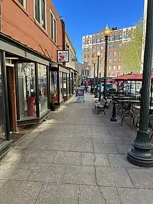 Wall Street is a thoroughfare in Asheville, North Carolina, United States. It runs for about 730 feet (240 yd) from Otis Street in the west to Battery Park Avenue in the east, and parallel to Battery Park Avenue to the north and Patton Avenue to the south. It has been referred to as a retail "woonerf," or "living street",[1][2] and has been nicknamed The Little Street with Big Ideas.[3]