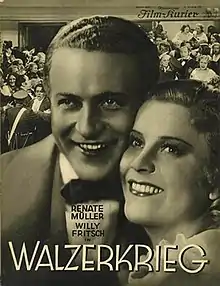 Waltz War (German: Walzerkrieg) is a 1933 German musical comedy film directed by Ludwig Berger and starring Renate Müller, Willy Fritsch and Paul Hörbiger. It is loosely based on the rivalry between waltz composers Joseph Lanner and Johann Strauss I, as well as the life of the Austrian ballet dancer Katti Lanner (Joseph's daughter) who eventually settled in Victorian Britain.[1] It is also known by the alternative title of The Battle of the Walzes.