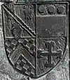 Denys quartered escutcheon, 1505, Olveston (detail)