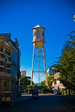 The Warner Bros. Water Tower is a historic water tower located at the Warner Bros. Studios in Burbank, California. Built in 1927, it stands 133 feet (41 meters) tall.[1] The tank, which had a capacity of 100,000 U.S. gallons (380,000 L), is no longer used to hold water.[2] It is decorated with the WB shield on either side and serves as a company icon.