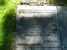 It was unveiled on 1 September 1999 among others by Hamburg culture senator Christina Weiss and in the presence of novelist Andrzej Szczypiorski.[1][2] On a polished surface made up of 36 elements, two of which with German and Polish texts on opposite sides, and to be walked on, are positioned in three rows 30 rough-hewn granite blocks. A gravel path is leading to the front side of the sculpture with which it forms a small valley.[3] The stone used is exclusively Polish Strzegom granite. The memorial is dedicated to the 6000 Poles deported from the 1944 Warsaw Uprising to the Nazi concentration camp in Neuengamme and was initiated by the Polish community in Hamburg commemorating at the same time the 60th anniversary of the outbreak of World War II. Polish sculptor Jan de Weryha-Wysoczański created the monument pro bono.[4][2][5][6]
