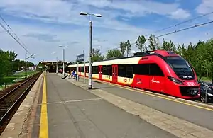 Warszawa Radość railway station is a railway station in the Wawer district of Warsaw, Poland. As of 2012, it is served by Koleje Mazowieckie, who run the KM7 services from Warszawa Zachodnia to Dęblin and by Szybka Kolej Miejska, who run the S1 services from Pruszków PKP to Otwock.