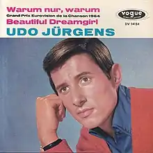 "Warum nur, warum?" (German pronunciation: [ˈvaːrʊm nuːɐ̯ vaˈrʊm]; "Just why, why?") was the Austrian entry in the Eurovision Song Contest 1964, sung in German by Udo Jürgens. "Warum nur, warum?" was succeeded as the Austrian representative in the Eurovision Song Contest 1965 by "Sag ihr, ich lass sie grüßen" ("Tell her, I send my love"), also performed by Jürgens.