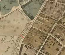 Detail of 1814 map of Boston, showing location of Washington Gardens on Common Street