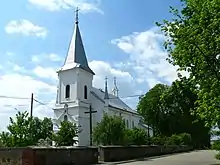 The five-dome, brick church was built in the mid-nineteenth century and consecrated in 1853 by the Bishop of Brzeg, Ignacy. In 1857, a free-standing, brick belfry was built in the style of the church, which also serves as a gate. In 1867, the church was partially burnt. The following year, after being struck by lightning, it burned down completely. Reconstruction ended in 1875.