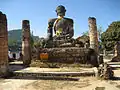 Wat Phiat Wat is located in Muang Khoun, the former capital of Muang Phuan in the 14th century. What Phia Wat is said to be constructed in 1322 by Chao Lan Kham Khong, in order to house the first Buddhist statue in Xiangkhouang, which was brought over from Burma. In 1375, invading Chinese forces destroyed the complex and cut off the arm of the Buddha statue, but the Wat was later rebuild. In 1953, Wat Phia Wat was again destroyed during the First Indochina War, but rebuild in 1954.[1] Finally, the Wat was bombed by the US airforce during the Second Indochina War. Wat Phia Wat collapsed, but the Buddha statue still survives, although suffering significant damage. A new temple was created after the war.[2]