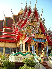 Wat Plai Laem (Thai: วัดปลายแหลม) is a wat on the resort island of Ko Samui, Thailand. Like the nearby Wat Phra Yai or "Big Buddha Temple", it is a modern Buddhist temple. The temple's design incorporates elements of Chinese and Thai traditions and was in part designed by distinguished Thai artist Jarit Phumdonming. Its main statue, which is in Chinese style, is not of Gautama Buddha. It is a form of the bodhisattva of compassion and mercy, Avalokiteśvara, called Cundi. This form of the deity is known in Chinese as "Guanyin with eighteen arms".