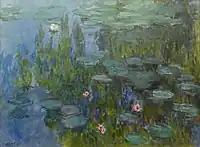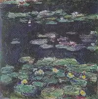 Water Lilies (French: Nymphéas [nɛ̃.fe.a]) is a series of approximately 250 oil paintings by French Impressionist Claude Monet (1840–1926). The paintings depict his flower garden at his home in Giverny, and were the main focus of his artistic production during the last thirty years of his life. Many of the works were painted while Monet suffered from cataracts.[1][2]