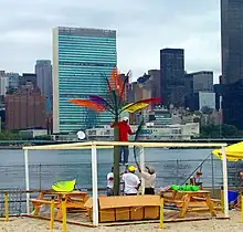 Water Taxi Beach was an artificial temporary beach operated from 2005 to 2010 on a wharf on the East River in the Hunters Point section of Long Island City, in the New York City borough of Queens. It was operated by the New York Water Taxi Company and was open to the public for free during the summer months. The beach was also rented for private parties. In concept, Water Taxi Beach is similar to Paris Beach in Paris, France.[1] The beach was operated by Harry Hawk and Tony Rosciglione and partners who ran the beach owned by NY Water Taxi, now Harbor Experience Companies. It was part of a public-private partnership with the Port Authority of NY and NJ.[2]
