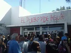 Demonstration at Caleta Olivia Town Hall (The graffiti says: "The people demand water")