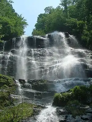 The waterfalls of northern Georgia, U.S., are a prominent feature of the geography of that region, as well as a major focus of tourism and outdoor recreation. Many are located in state parks, national forests, wildlife management areas, and other public lands. Many are accessible—with varying degrees of ease or difficulty—via established hiking trails, and some developed areas include boardwalks, observation platforms, picnic areas, and other amenities. The Cherokee called this region "Land of a Thousand Waterfalls".[1] The third-, fourth-, and fifth-highest waterfalls in the eastern United States are located in northern Georgia.