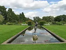 There are eight acres of landscaped ornamental gardens with an alpine garden, formal knot garden, herbaceous borders, riverside walk, rose garden, and water-lily canal.[9][10][11][12] There are also five acres of orchards,[13] and two collections of saxifrages which are accredited with Plant Heritage under the National Plant Collection scheme.[14][15]