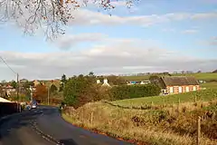 The OS map of 1856 shows that whinstone and sandstone quarries were located downstream of the mill. The old smithy, now a private dwelling, lies near the Brunton bungalows.[2] The village had a post office located at the site of the schoolhouse building that survives today as a private dwelling. In 1856 the school is shown as being located at the east side of the crossroads between Laigh and High Arness farms.[2] In 1895 the school is shown on the OS map as being close to the old post office at the site of the present community centre.[6] The present community centre was built as a school in 1823 following public subscription and the permission of George, 4th Earl of Glasgow.[1]