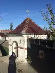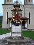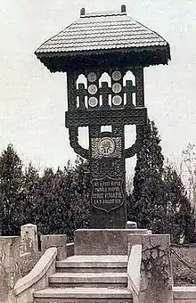 The designers sought to integrate the crosses into their surroundings, as was the case with the ones set up in the military cemeteries near Curtea de Argeș Monastery and in Sinaia.[10] By 1931, a number had been erected in small, new military cemeteries.[11] Additionally, as noted in a 1926 article, troițe were placed on the battlefields where troops had died. At times, proposed crosses drew objections from local authorities. For example, at Odorhei in 1934, local politicians argued that placing a donated troiță in the city center would damage its aesthetics; it was instead relegated to the yard of the Gendarmerie school.[12]