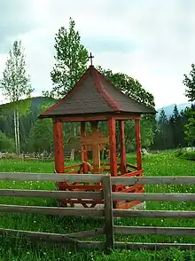 The magic associations of water means that crosses are found near streams, bridges and wells, superstition holding that well bottoms can hold evil forces. The troiță, pointing heavenward, guards against the dark forces in the depths of the earth. Crosses at village entrances served to guard the locals from plagues and enemies, and were also landmarks. Homeowners would raise crosses in front of their dwellings, seeking spiritual protection. Cemetery troițe do not commemorate the dead, instead watching the boundary between living and dead, amplifying the power of the cross symbol. Finally, a troiță can be a cenotaph, celebrating war heroes whose bodies have not been found, or other dead buried elsewhere.[6][7]
