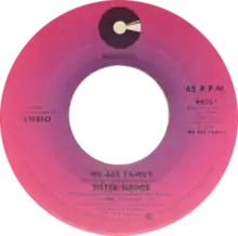 "We Are Family" is a song recorded by American vocal group Sister Sledge. Composed by Bernard Edwards and Nile Rodgers, they both offered the song to Atlantic Records; although the record label initially declined, the track was released in April 1979 as a single from the album of the same name (1979)[1] and began to gain club and radio play, eventually becoming the group's signature song.[2]