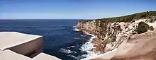 The closure of the landmark, however, did not deter visitors from jumping the safety fence established nearby and continuing to take photographs atop the unstable formation, prompting the NPWS to issue a $300 fine for visitors who do so, effective in late March 2016.[11][12][13] This also did not prevent further instances of visitors jumping the fence, leading to the NPWS to collaborate with the New South Wales Police Force to start patrolling the area; an operation which began in June 2016.[14][15] By July 2016 six fines had been officially issued by the NPWS since the rock's closure,[14] with seven more being issued by July 2018.[15] The rock will remain closed to the public until its eventual demise, though proposals by the NPWS advised establishing a permanent viewing platform near the landmark.[16][17] As part of the New South Wales Government's 2016-17 state budget, the proposal was fully funded as part of a $9 million "windfall" granted to the NPWS over the subsequent 4-year period to upgrade the Royal National Park Coast Track.[18]