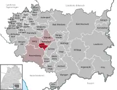 Location of Weingarten within Ravensburg district