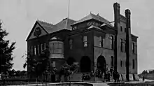 It was designed by John W. Ross (1848-1914). According to its NRHP nomination, the building "is stylistically significant for its Queen Anne design, and particularly so as an uncommon example in the state of the "urban" expression of that mode: brick fabric, with soaring, parapeted chimneys."[2]