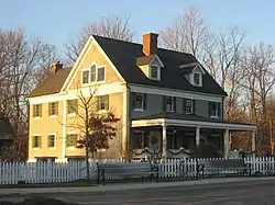 West-Harris House, also known as Ambassador House, is a historic home located at 106th Street and Eller Road in Fishers, Hamilton County, Indiana, United States. The ell-shaped, two-story, Colonial Revival-style dwelling with a large attic and a central chimney also features a full-width, hip-roofed front porch and large Palladian windows on the gable ends of the home. It also includes portions of the original log cabin dating from ca. 1826, which was later enlarged and remodeled. In 1996 the home was moved to protect it from demolition about 3 miles (4.8 km) from its original site to its present-day location at Heritage Park at White River in Fishers. The former residence was listed on the National Register of Historic Places in 1999 and is operated as a local history museum, community events center, and private rental facility.