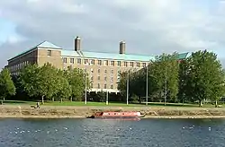 Nottinghamshire County Council's headquarters are at County Hall, a municipal building on the south bank of the River Trent. Rushcliffe Borough Council's headquarters are at Rushcliffe Arena,[9] a joint headquarters and leisure facility on Rugby Road.[10]