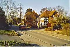 Twin, common mock tudor homes in the village, in this case however, a crossover between a single-family and a semi-detached house