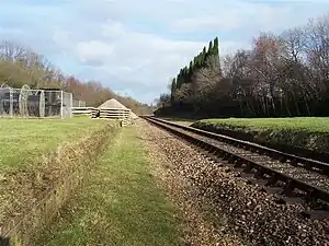 However, under current Railway Inspectorate guidelines, it would not be possible to build what would now be considered a "new" station on the former site, as it is located on a gradient. Hence the society believes that any future station at West Hoathly would most likely be located on the level stretch from the end of the goods yard towards New Coombe Bridge, approximately where the former temporary run-around loop was located.[3]