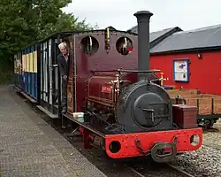 The West Lancashire Light Railway (WLLR) is a 2 ft (610 mm) narrow gauge railway that operates at Hesketh Bank,[1] situated between Preston and Southport in North West England.[2] The distance between the stations on the railway is 430 yards (393 m),[2] though track extends eastwards beyond Delph station on ledge above the old clay pit which is too narrow to contain a run round loop. An extension of up to 435 metres (1,427 ft), running along the north bank of the fishing lake has been proposed.[3] The railway has seven steam locomotives, three of which are in operating condition; two are currently being rebuilt and another is on static display. There are also two electric locomotives and many IC locomotives.[4]