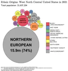 As of 2020, the West North Central states had a combined population of 21,616,921. This number is a 5.4% increase from 20,505,437 in 2010. The West North Central region covers 507,913 square miles (1,315,489 km2) of land, and has an average population density of 42.56 people per square mile.