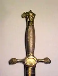 The sword is based on that used by the US Army when USMA was founded (16 March 1802). The first swords used were legacies from the Army following the formation of the Academy in 1802 and are believed to have been similar to the 1767 French Grenadier Sergeant's sword used in the Revolutionary Army. The first swords procured for the Academy were delivered in 1838.[4]