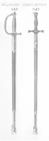 There is no further mention of cadet swords in the Regulations until 1839, when it was stated that they were to be of the type worn by the Pay Department, which then carried gilt mounted small swords with black scabbards.[7]