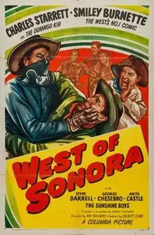West of Sonora is a 1948 American Western film directed by Ray Nazarro and written by Barry Shipman. The film stars Charles Starrett, Steve Darrell, George Chesebro, Anita Castle and Smiley Burnette. The film was released on March 25, 1948, by Columbia Pictures.[1][2][3]