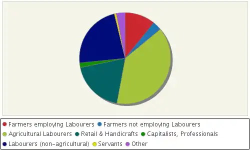 In 1831 the dominating occupation was working in agriculture and farming.[5] There were no manufacturing jobs in 1831.[5] In 2001 there were 80, which decreased to 52 in 2011.[6][7] Several coal and lead mines were being worked near Shrewsbury and Westbury at the former time. Many collieries were closed by 1921, with the last closing in 1941.[8]