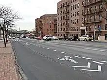 With the exception of 0.5 miles (0.80 km) of its length, Westchester Avenue is underneath elevated tracks of the New York City Subway. The IRT White Plains Road Line ("2" train"5" train trains) runs over Westchester Avenue from Brook Avenue to Southern Boulevard, and the IRT Pelham Line ("6" train"6" express train trains) from Whitlock Avenue to its terminus at Pelham Bay Park. The Bx4/Bx4A buses serves Westchester Avenue between Bergen Avenue and Parkchester (Bx4A) or Westchester Square (Bx4) while the Bx24 serves Westchester Avenue north of Westchester Square. The Bx8 and Bx27 use the road for short segments.