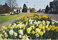 Many pre-1800 listed buildings, including some that are thatched, are in the lanes leading off the A25, including Leslie Howard's (actor 1893–1943) Stowe Maries, built in the 1550s, in Balchins Lane. Milton Street and Westcott Street lead to several more old buildings.[10] The Church of the Holy Trinity is Grade II listed because it was designed in 1851, by Sir George Gilbert Scott, and is made of knapped flint with ashlar quoins/dressings. Its spire has a clock, striking bell and weather vane, and there is a small western turret.[11] Charles Barclay of Bury Hill gave equivalent to £116,485 in 2021 for it to be built, and Lady Mary Leslie the same, as an endowment. The clock was installed to commemorate the Jubilee of 1887. The parsonage was built at the expense of Barclay and the secular Westcott School was built by subscription in 1854. The infant school was also built by subscription, in 1882.[9]