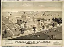 In 1849, the House formally opened on a 42-acre plot of land just north of the growing city of Rochester. The prison population quickly grew from 50 to over 400. In 1880, the local press called the House, which was managed by social and political elites in Rochester, "one of the best managed institutions of its kind in the country."[2][3][4]