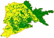 The Western Mallee subregion, with agricultural areas in yellow, and native vegetation in green