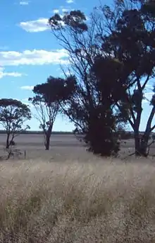 Western Mallee is situated on south-eastern parts of the Yilgarn Craton. It has a gently undulating landscape, with somewhat more relief than eastern parts of the Mallee region. There are a variety of soils, including clays and silts over kankar; sand; lateritic pavements; and granite outcrops. Gypsum dunes also occur in the area. The subregion has occluded drainage, with a number of lakes, both saline and fresh.[1]