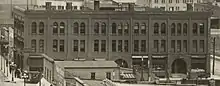 The Northwestern National Bank formed in Aberdeen in 1888 with Henry Marple as president.[2][3][4] In August 1888, the bank purchased the property and general store at 21–23 South Main Street to build a new bank building.[5] Construction took place from 1888 through 1889[6][lower-alpha 1] with the bank opening in the new location in February 1889.[8] In May 1891, a fire damaged the building and gutted the Kearney and Boyer grocery store.[9] In March 1903, another fire damaged the building, originating in the basement banana room of the Gamble & Robinson grocery store.[10]