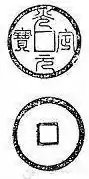 | Qian You Yuan Bao | 乾佑元寶 | 乾佑元宝 | Regular script, Semi-cursive script, Seal script[8][9] | 1170–1193 | Renzong | |