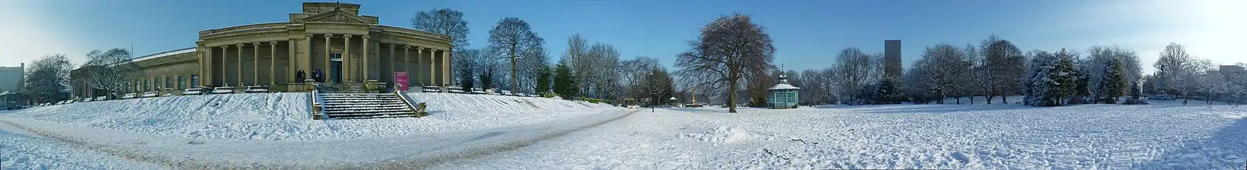 Weston Park Museum panorama in winter. (The right side of the building is missing as was bombed in the Second World War.)